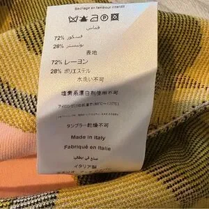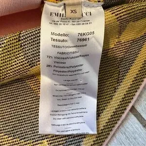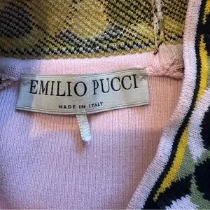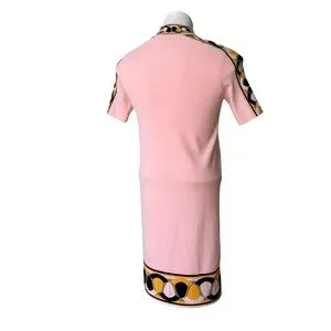 Emilio Pucci Knit Short Sleeve Mock Neck Dress with Geometric Border Trim. Rayon/polyester blend.