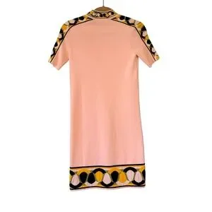 Emilio Pucci Knit Short Sleeve Mock Neck Dress with Geometric Border Trim, Sz XS