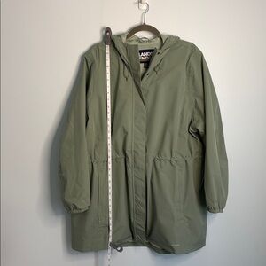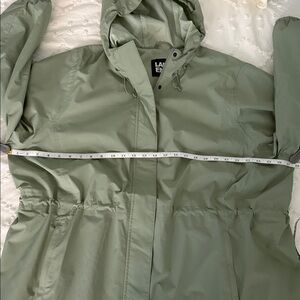 NWOT sage green waterproof raincoat in perfect condition.