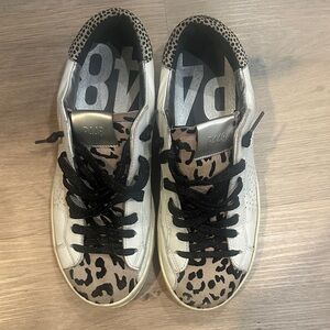 P448 Leopard Print Sneakers with Black and Silver Accents