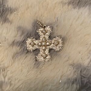 Elegant sterling silver and gold textured cross pendant with sparkling accents.