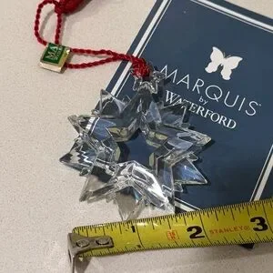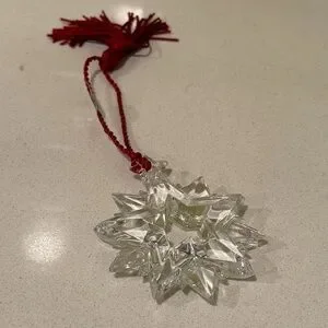 Beautiful crystal star ornament. Features a red tassel for hanging.