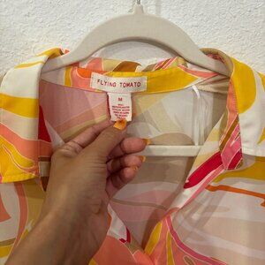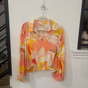 Flying Tomato Women's Chiffon 70s Groovy Long Sleeve Blouse