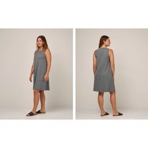 Wool& Sierra Tank Dress Merino Wool Pockets Swing Charcoal Grey Size L Long