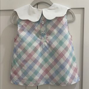 Stitchy Fish Pastel Plaid Baby Outfit with White Scalloped Collar 18M NWOT