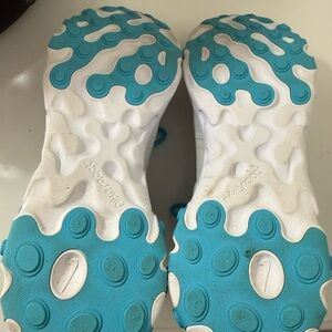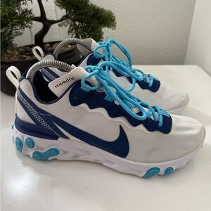 Sleek white design with bold blue accents. Perfect for sports and casual wear.