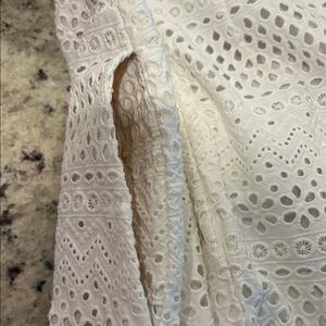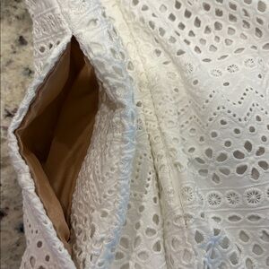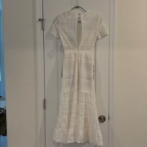 Self-Portrait's Designer Bea midi dress is a great option for summertime outings. Tailored using white cotton fabric, this midi dress is accentuated with eyelet detailing and short sleeves. Side pockets (see brown lining of pockets). White lining at bust area. Get this pretty piece now! No longer in production. Retailed for over $500. I bought at consignment and could not wear it. Like new perfect condition.