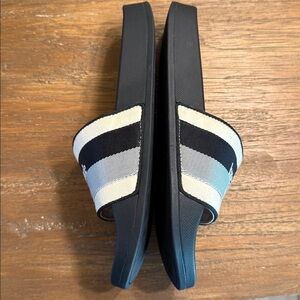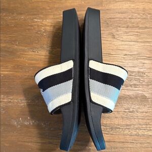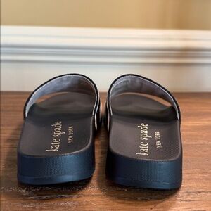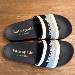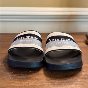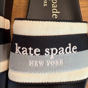 Kate Spade Buttercup textile slip on sandals in parchment and black cotton canvas