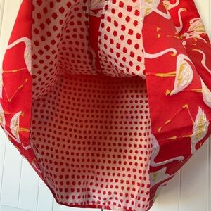 Flamingo Print Red Mini Dress Back Buttons Gold Accents Buru NWT