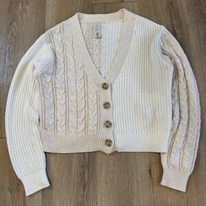 Joie Cream Cable Knit Cardigan Sweater Medium V Neck Buttons Long Sleeve