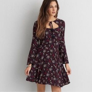 American Eagle AEO Cutout Tassel Floral A-line Dress Size Large L, American Eagle AEO Women’s Cutout Tassel Floral Bell Sleeve Babydoll Dress Large