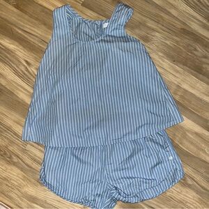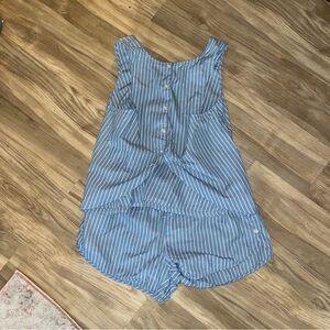 LAKE size medium blue and white striped pajamas with back button detail