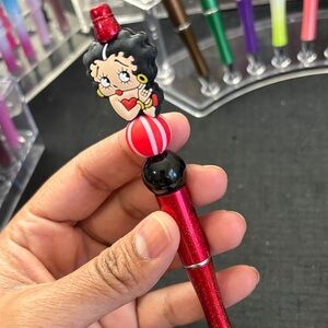 Fun Betty Boop pen with red and black accents. Perfect for adding character to your writing.