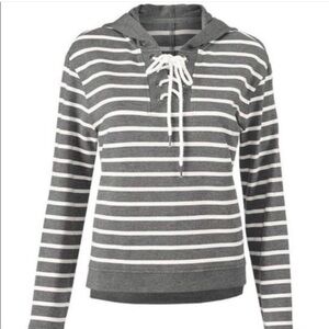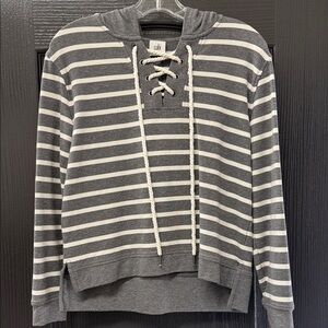 CAbi Charcoal and White Striped Lace-Up Hoodie XS