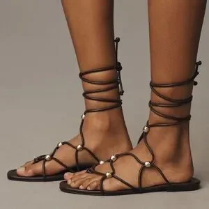 NWT Anthropologie Embellished Tie-Up Sandals - leather