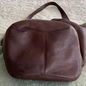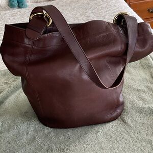 This stylish brown leather tote bag is perfect for any occasion. Crafted with high-quality materials, it offers both durability and elegance. The rich brown color adds a touch of sophistication to your outfit. This bag is in beautiful vintage condition. I have conditioned with CPR. This is a very large tote. Length 17” height 14” depth 8”, strap drop 12”. Please note measurements are approximate.