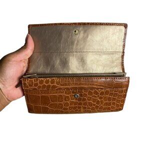 Anne Klein Women's Brown Crocodile Embossed Vegan Leather Wallet