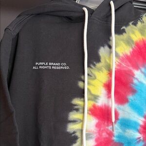 Stand out with this vibrant tie-dye hoodie, featuring a blend of black, red, blue, and yellow. Perfect for casual outings.