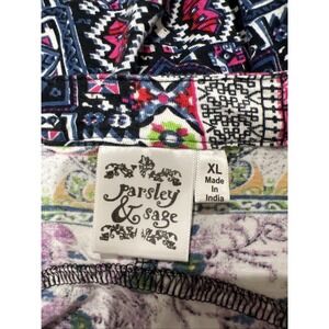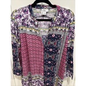 Parsley & Sage Knit Button Up Tunic Top Geometric Artsy Boho Colorful Hippie