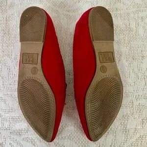 Chic red flats with a sleek design. Perfect for casual wear. Comfortable and stylish.