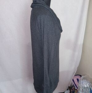 Eddie Bauer Tunic Sweater Women's Size M Gray Cowl Neck Waffle Knit Long Sleeve