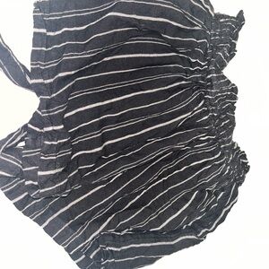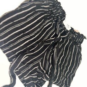 Chic charcoal shorts with white stripes. Perfect for casual wear. elastic stretchy waist, tie belt attached. super cute, trendy. size small.
