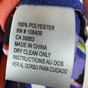 • Multicolor abstract print (red, yellow, green, purple, black, and white)