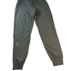 Lululemon Women's Dance Studio Mid-Rise Army Green Jogger Pants Size 4 Pre-owned good condition. These joggers had lightweight fabric and two-way stretch. Waistband draw cord helps you customize the fit. Front pockets with interior card sleeves, cinch hem. See photos for measurements, contact me with any questions. Will ship within 24 hours. Thanks! Chris