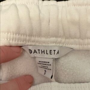 EUC Athleta Forever Fleece 2pc Tracksuit White Black Piping, Top M, Bottom S