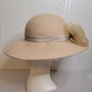 Soft neutral tone with a structured brim and classic mid-century silhouette.