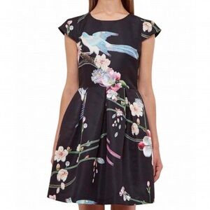 Ted Baker Zaldana Mini Dress Flight of the Orient Black Birds Novelty Sz 0 XXS