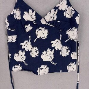 Free People Tank Top Womens Large Blue Floral Wrap Cami Smocked Peplum V Neck