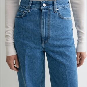Chic wide-leg jeans by Toteme. Stylish blue hue. Perfect for versatile wear.