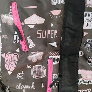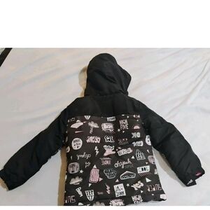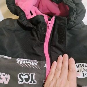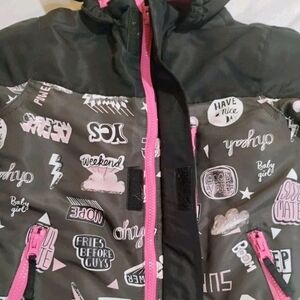 Keep your child cozy and stylish with this trendy puffer jacket. Featuring a sleek black design with playful pink accents, it's perfect for any outing.Like new condition.For measurements please see pictures