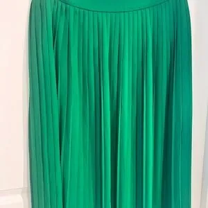 Chic green A-line skirt with pleats. Ideal for versatile styling.