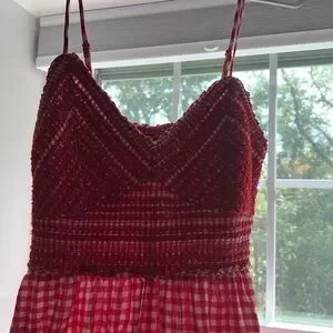 Fit & Flare Gingham Embroidered Smocked Midi Cami Dress old navy