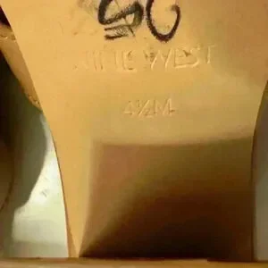 Nine West heels in special size! Tread is perfect. Straps have a few discoloration spots that are not noticeable.
