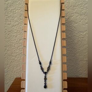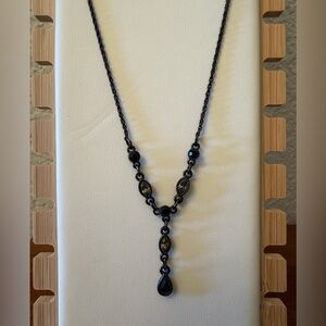 Vintage Necklace: Y-drop design, black chain and crystals (onyx color). EUC.