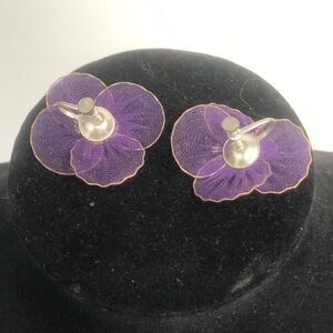 vintage violet fabric screw on earrings mesh tool purple spring summer statement