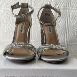 Steve Madden Carson-R Crystal Rhinestone Ankle Strap Open Toe Heels Silver 6