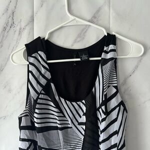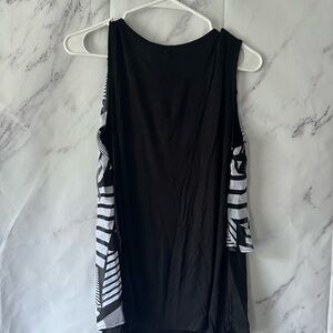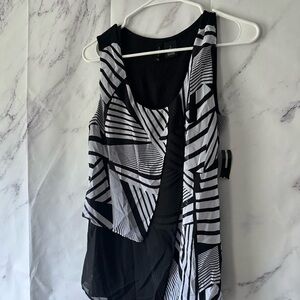 NEW DIRECTIONS - BLACK/WHITE ABSTRACT PRINT LAYERED SLEEVELESS BLOUSE LARGE NWT