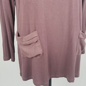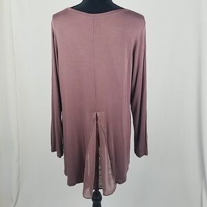 LOGO by Lori Goldstein women L knit top w/chiffon pockets back detail, 95% rayon, 5% spandex.