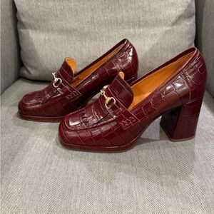Gorgeous, barely worn Sézane brown croc-embossed loafers, in original box. One of the prettier pairs of shoes I’ve ever purchased, but unfortunately they don’t quite work for me so I’m reposhing. Just arrived this week so haven’t been in my closet for long. Beautiful embossing and gold hardware. Dust bag included. Included both previous posher’s pictures and my own.