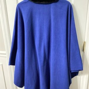 LeModa Poncho Shawl Blue W/black Faux Fur Collar One Size Womens