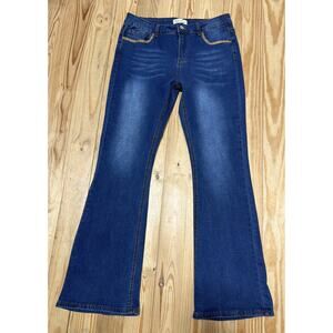 Bamboo Women's 15 Embellished HR Flare Leg Denim Jeans Studded Rhinestones 31x30