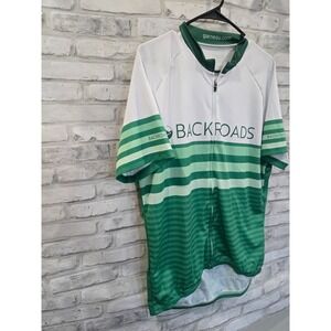 Louis Garneau Full Zip Cycling Jersey Men XL Green White Backroads Short Sleeve