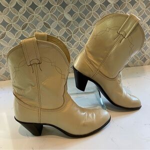 Vintage Nocona Western Cowboy Costal Cowgirl Cream Leather Boots USA Womens 5 B