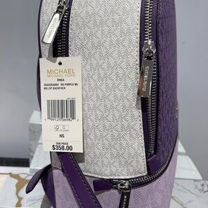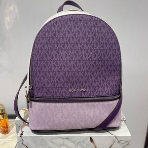 MICHAEL KORS Rhea Md Zip Color-Block Signature Logo Backpack Dark Purple MLT NWT