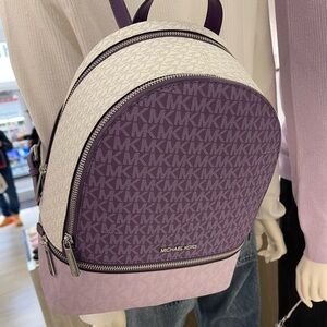 Stylish Michael Kors backpack in lavender and cream. Perfect blend of elegance and utility. Ideal for daily use.