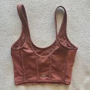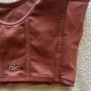 Stylish and supportive sports bra. Ideal for workouts and yoga. Tag is removed, size xs. Color is reddish brown/rust.